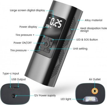 Deze draagbare bandenpompen zijn compatibel met auto's, motorfietsen, fietsen, sportballen en opblaasbaar zwembadspeelgoed, enz.
